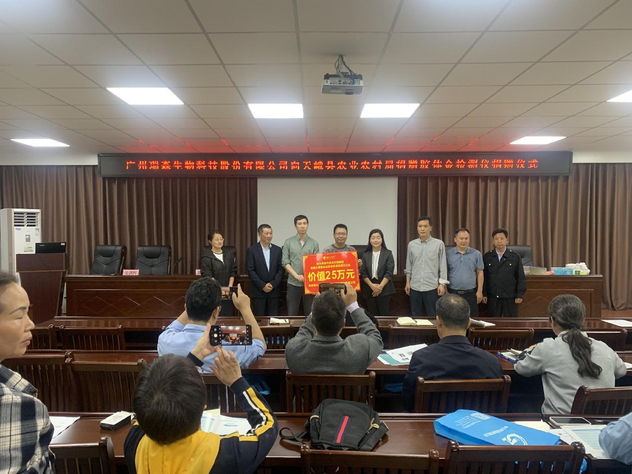 在捐贈(zèng)儀式上,廣州瑞森生物科技股份有限公司向天峨縣捐贈(zèng)先進(jìn)檢測(cè)儀器設(shè)備共5套,價(jià)值25萬(wàn)元。表達(dá)了瑞森生物公司對(duì)廣西紅色革命老區(qū)“中國(guó)長(zhǎng)壽之鄉(xiāng)”天峨縣的熱心支持,旨在希望未來(lái)能夠更好的為革命老區(qū)在食品安全快檢監(jiān)督工作開(kāi)展方面提供技術(shù)保障和優(yōu)質(zhì)服務(wù),為天峨縣老百姓能夠吃上綠色、安全、放心的食用農(nóng)產(chǎn)品貢獻(xiàn)企業(yè)的一份力量。