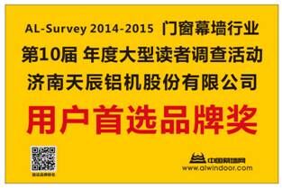 AL-Survey讀者調(diào)查活動(dòng)全稱:中國(guó)幕墻網(wǎng)年度大型讀者調(diào)查活動(dòng)暨“我最喜愛品牌”評(píng)選活動(dòng)。(以下簡(jiǎn)稱AL-Survey)我司作為設(shè)備領(lǐng)域的領(lǐng)先企業(yè),自上界獲得用戶首選品牌及市場(chǎng)表現(xiàn)獎(jiǎng)之后,2015年再次憑借“天辰鋁機(jī)”品牌在市場(chǎng)中的優(yōu)異成績(jī),強(qiáng)勢(shì)入圍2015-2016年度第11屆門窗幕墻品牌榜活動(dòng)。通過近十萬名活動(dòng)參與者的票選,AL-Survey將成為我司年度市場(chǎng)品牌推廣與產(chǎn)品銷售、服務(wù)質(zhì)量的晴雨表。