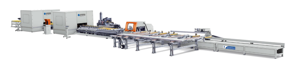 ⑸、操作安全可靠。自動化的作業(yè)模式,除上下料外,無需過多人為干預(yù),鋸切、沖孔及銑槽單元均有密封防護(hù)罩,確保操作人員安全。