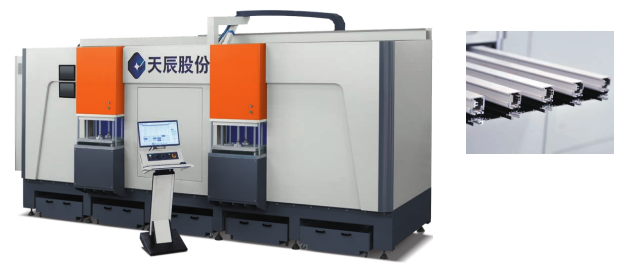 ☆?整機(jī)由七組私服電機(jī)控制,可實現(xiàn)全部刀具的數(shù)控自動走刀,無需人工調(diào)機(jī),可直接調(diào)用預(yù)設(shè)好的端面程序完成加工。左右兩工作臺可加工不同截面型材,效率更高。