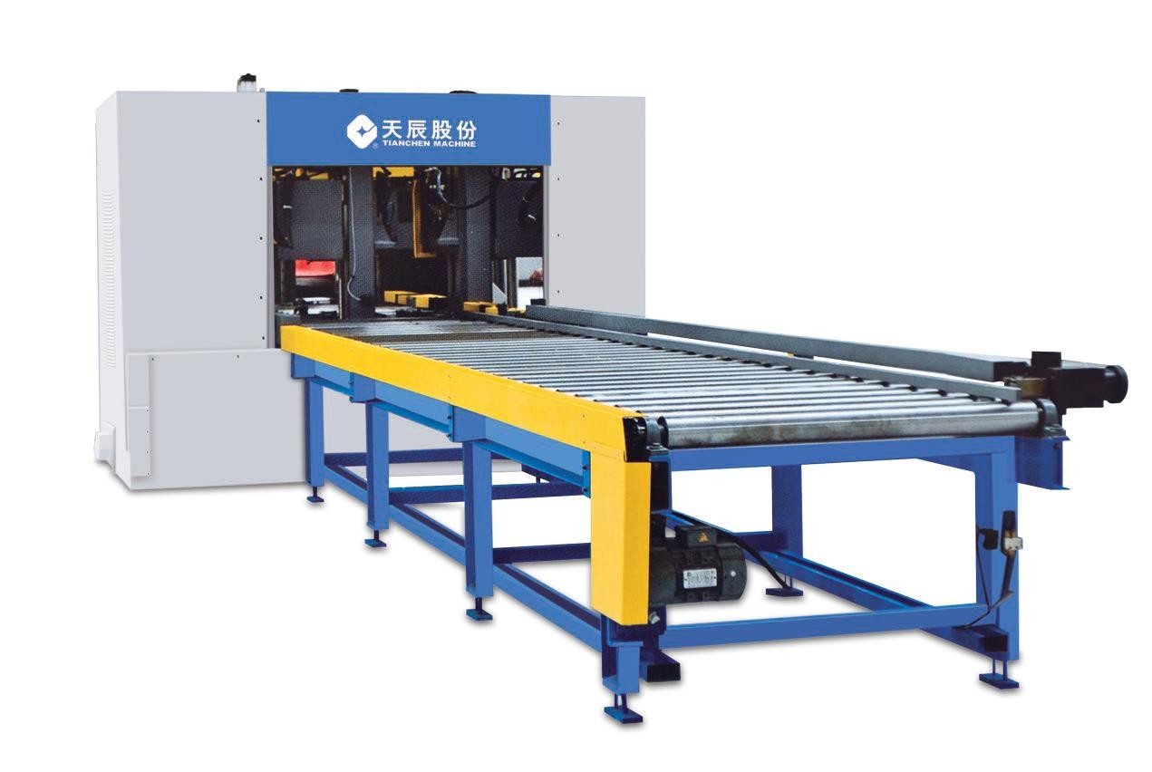 ?每個銑削動力頭配有三把銑刀,對工件的坡口、端面以及腹板弧槽可以通過一次進給全部加工完成。